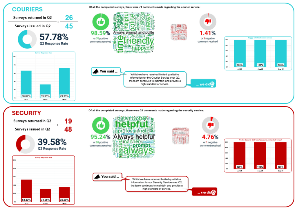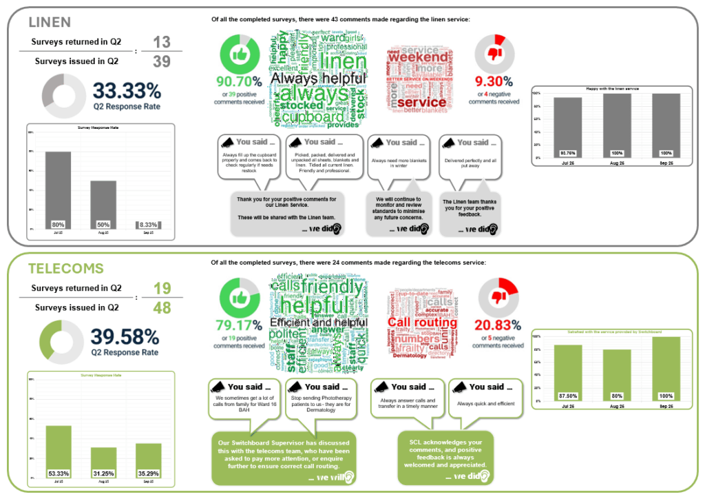We announced in the Trust’s December 2023 staff bulletin that a brief survey for each of the those services would be distributed to wards and departments on a monthly rotational basis to enable us to collect end-user feedback and suggestions.